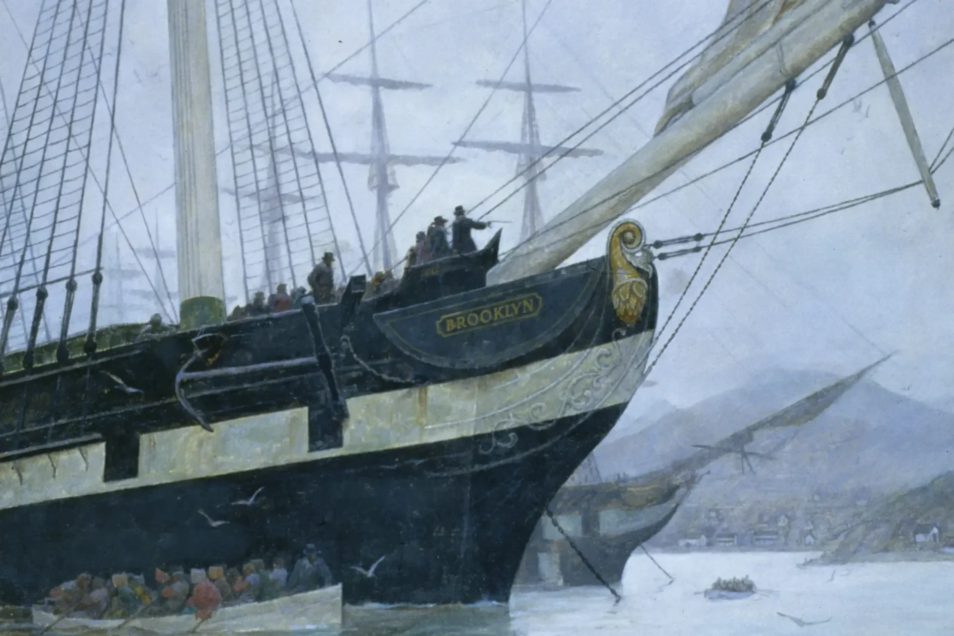 Pioneers Arrive by Ship in San Francisco Bay (Ship Brooklyn) by Arnold Friberg.